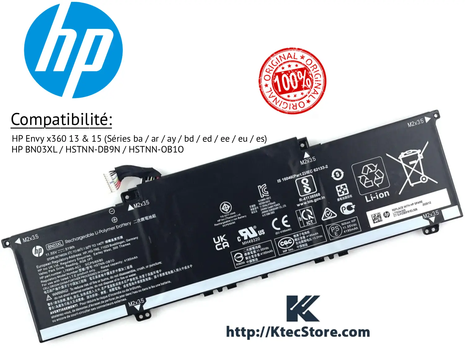 La batterie HP BN03XL originale est une batterie interne Lithium-ion (Li-ion) ou Lithium-Polymère (Li-Polymère) conçue spécifiquement pour les ordinateurs portables HP Envy x360 des séries 13 et 15, notamment les modèles récents sortis à partir de 2020. Elle offre puissance, autonomie et fiabilité, répondant aux exigences des professionnels et des étudiants recherchant une performance durable pour leur appareil HP.