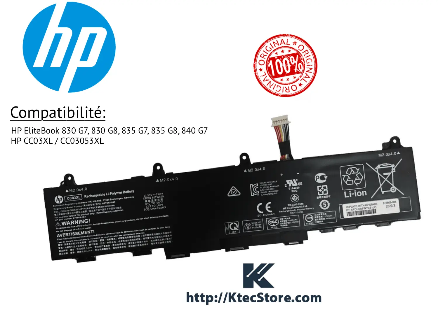 La batterie HP CC03XL est une batterie interne d’origine ou de remplacement spécialement conçue pour les ordinateurs portables professionnels HP, notamment les séries EliteBook, ZBook Firefly et ProBook Aero G7/G8.
