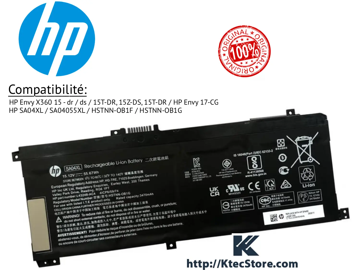 Que vous utilisiez votre HP Envy pour le travail, l’université, le design graphique ou le divertissement, la batterie SA04XL garantit une autonomie stable, une compatibilité parfaite et une durée de vie prolongée grâce à sa technologie Li-Ion ou Li-Polymère de qualité supérieure.