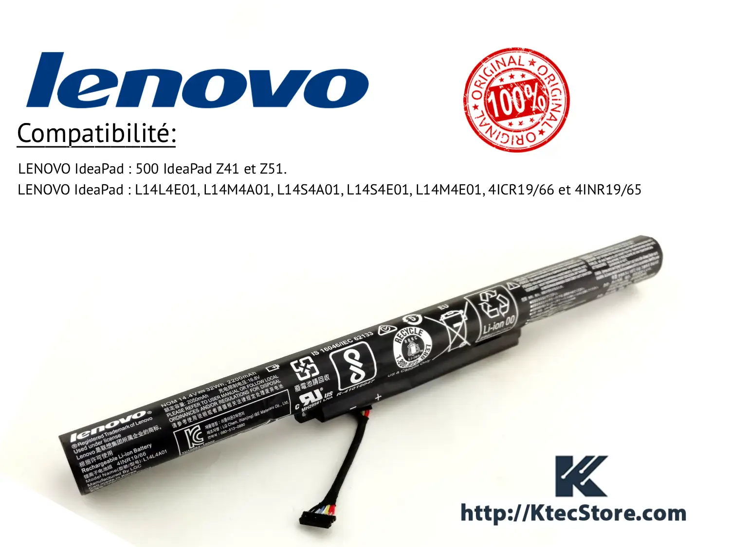Description & Spécifications Techniques Batterie Lenovo L14L4A01