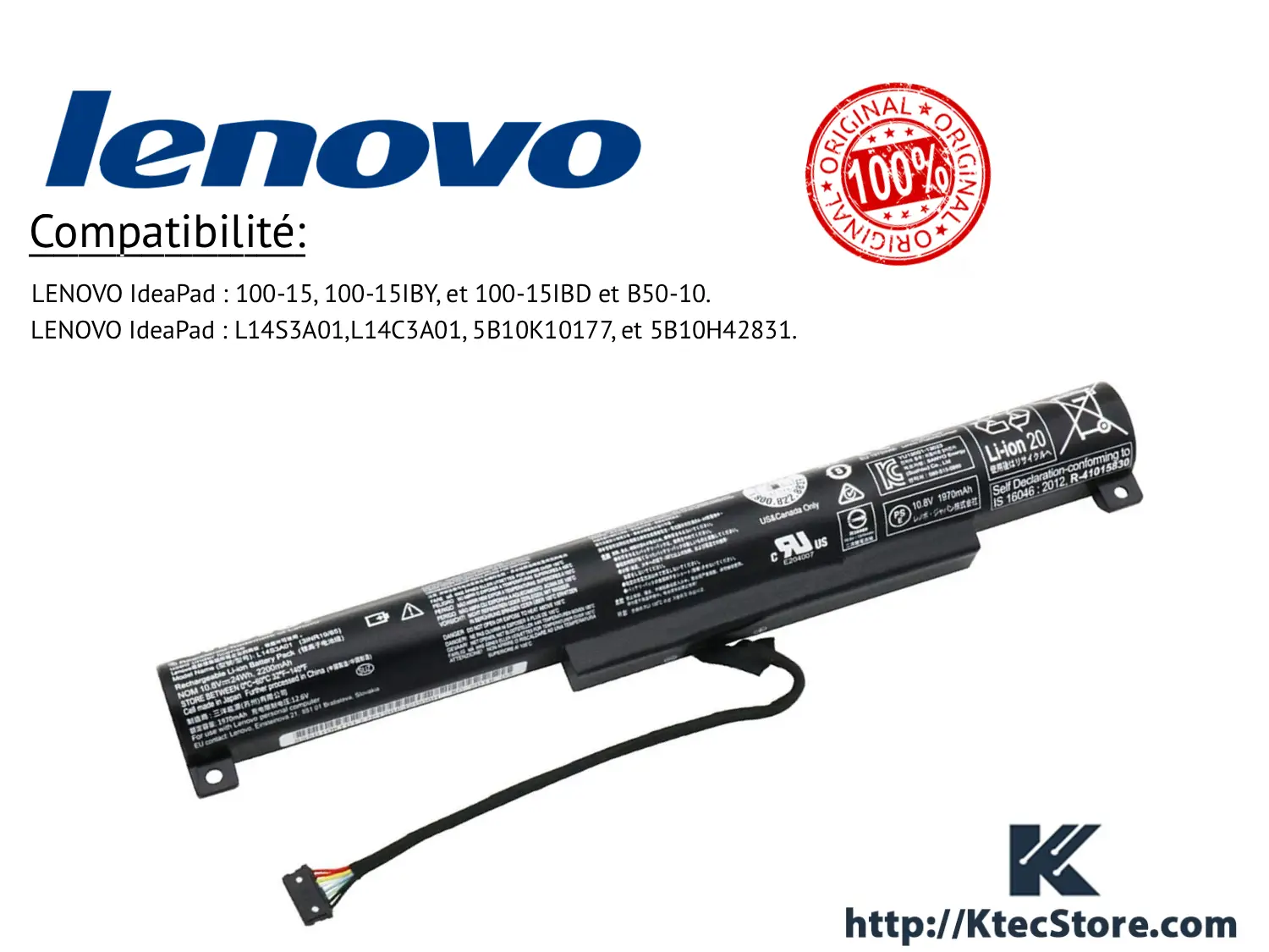 ⚠️ Important : cette batterie n’est pas compatible avec les séries IdeaPad 110, 310, 320 ou B50-30/B50-70. Veuillez vérifier le modèle exact de votre PC avant commande.